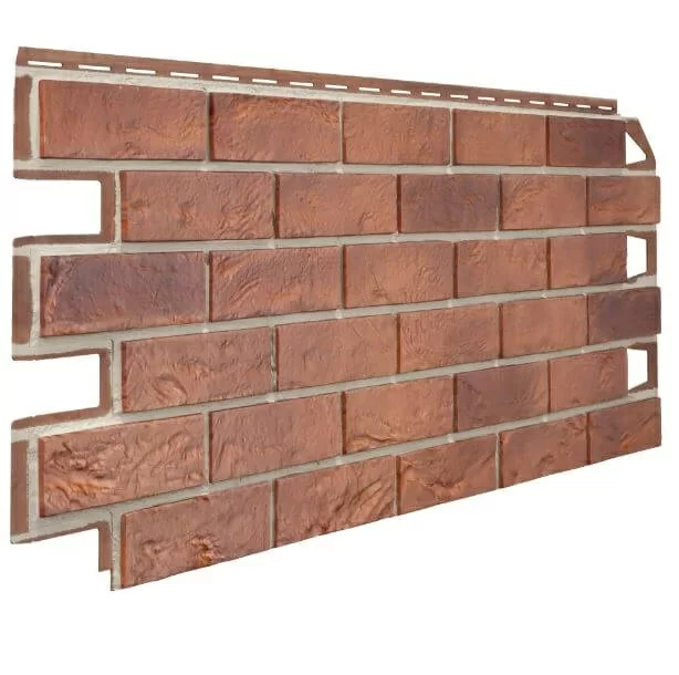 Современная фасадная система, имитирующая кирпичную кладку. Производится из полимеров на основе полипропилена. Используются для отделки фасадов малоэтажных зданий и облицовки цокольных этажей.