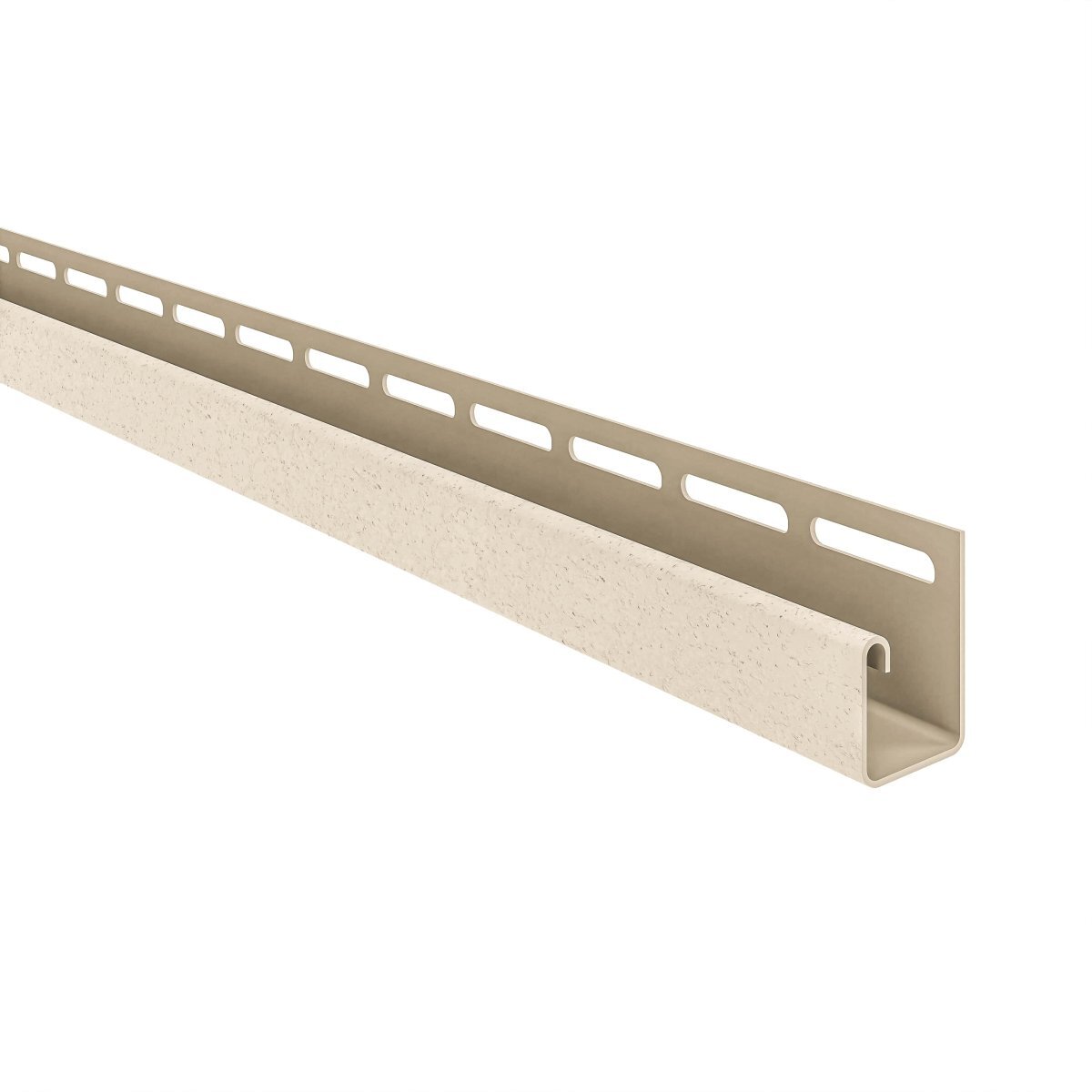 J профиль произведен из поливинилхлорида. Благодаря специальному составу ПВХ композиции изделие имеет высокую механическую прочность, морозостойкость и устойчивость к воздействию ультрафиолета. Профиль предназначен для обрамления горизонтально расположенных карнизных панелей. Деталь создает барьер от проникновения влаги и насекомых в пространство между стеной и отделкой.