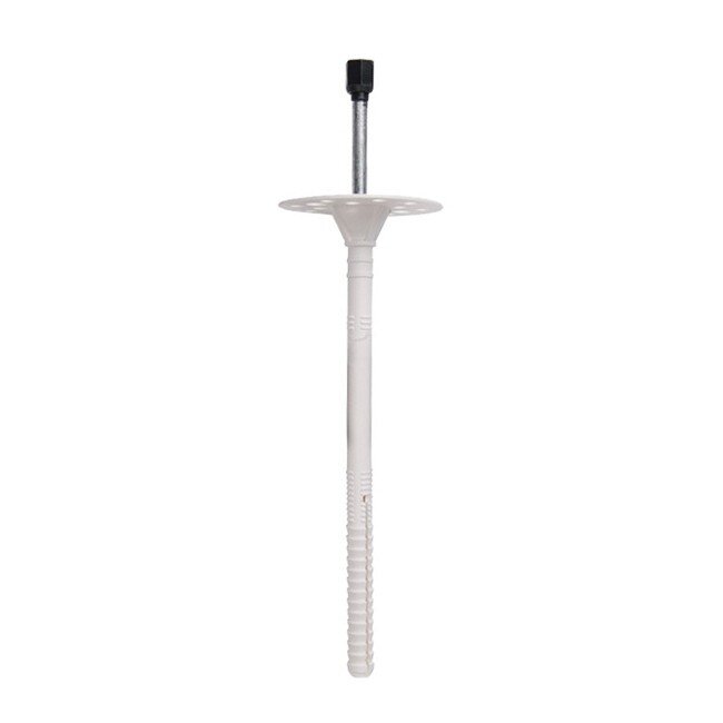 Применяется для крепления теплоизоляционных материалов к бетону, полнотелому и пустотелому кирпичу, камню, пенобетону. Представлен в виде дюбеля с двухсегментной распорной частью из ударопрочного полипропилена с увеличенной прижимной шайбой диаметром 60 мм и металлическим оцинкованным гвоздем с потайной головкой. Используется при монтаже тяжелых видов утеплителя или утеплителя большой толщины. Шляпка дюбеля способствует надежному удержанию материала теплоизоляции, препятствуя прорыву в месте крепления. Установка производится методом сквозного монтажа. В среднем на 1 кв. м. теплоизоляции требуется 5-6 дюбелей.