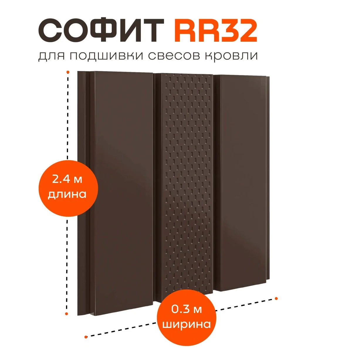 Софит металлический Aquasystem с центральной перфорацией, 303х2400 мм, 0,45 мм, St PE Zn140, RR 32