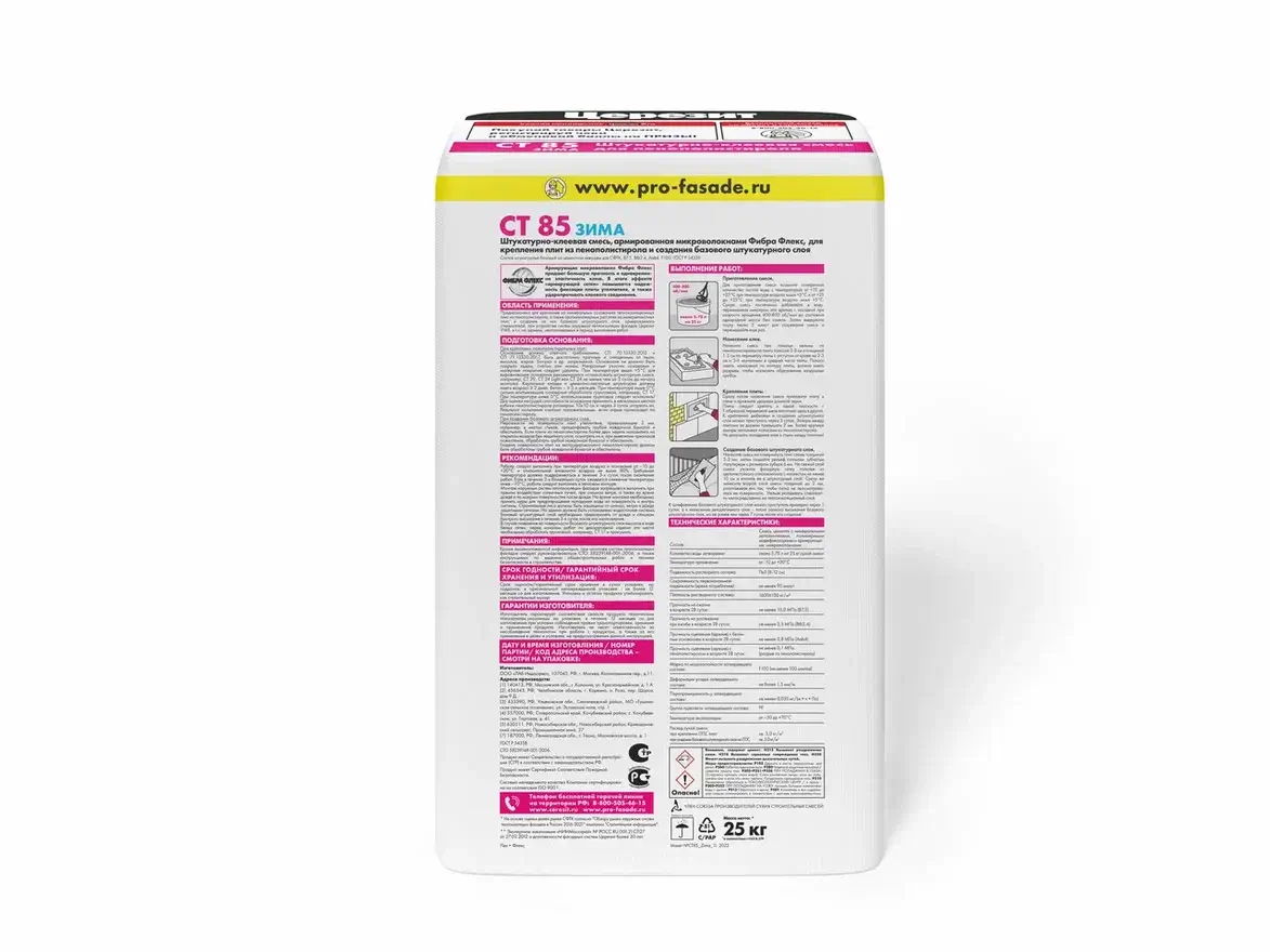 Штукатурно-клеевая смесь для пенополистирола Церезит СТ 85 Зима 25 кг