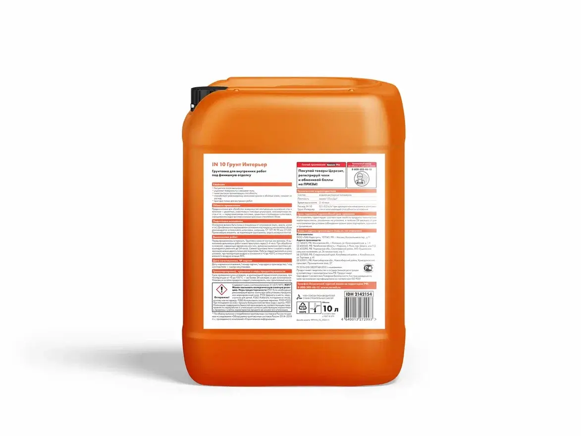 Грунтовка для внутренних работ под финишную отделку Церезит IN 10 Интерьер 10 л
