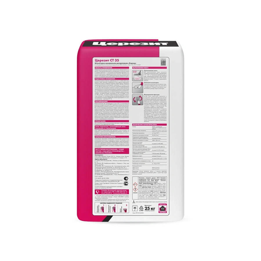 Штукатурка фасадная минеральная Церезит СТ 35 короед 2,5 25 кг белый