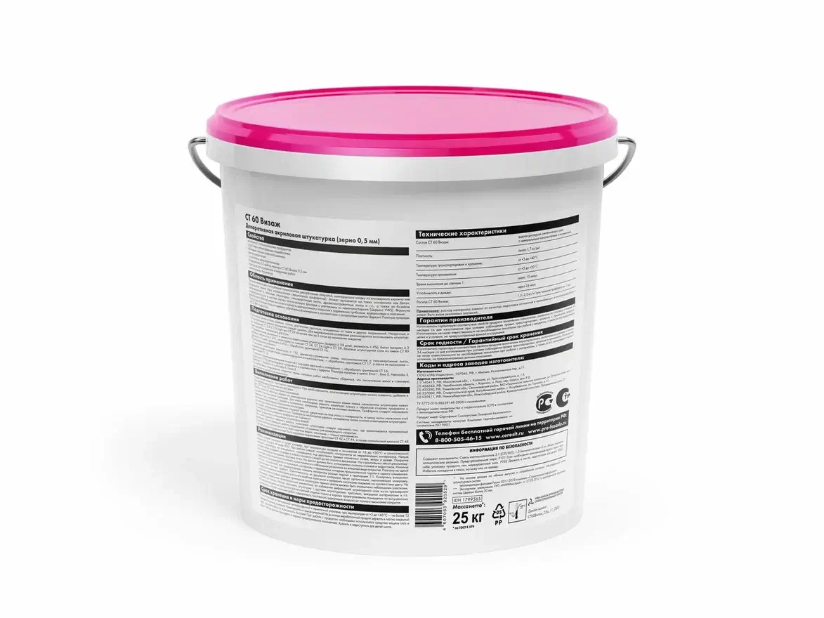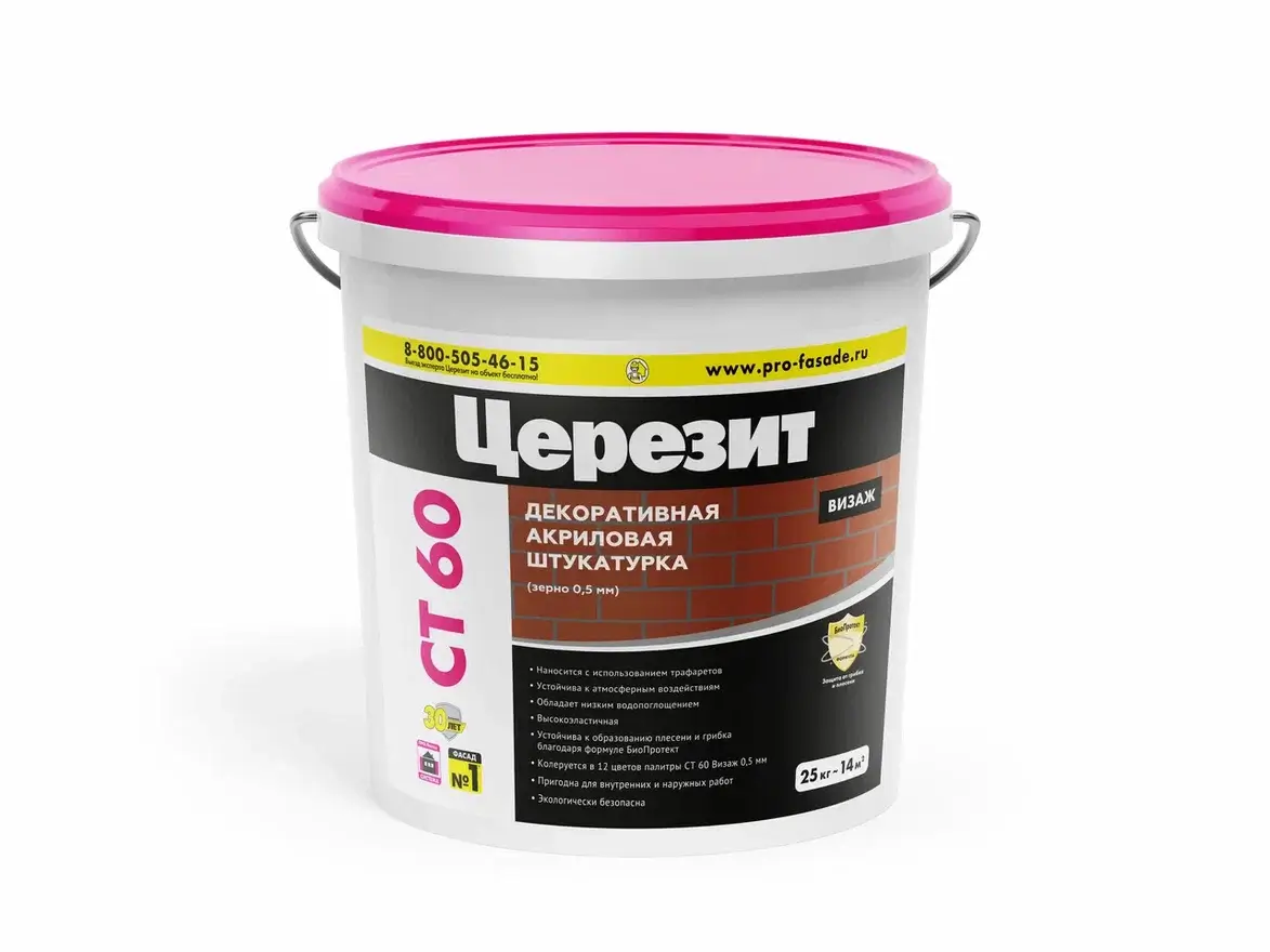 Штукатурка фасадная декоративная Церезит CT 60 Visage камешковая 0,5 колерованная Kalahari 2 25 кг