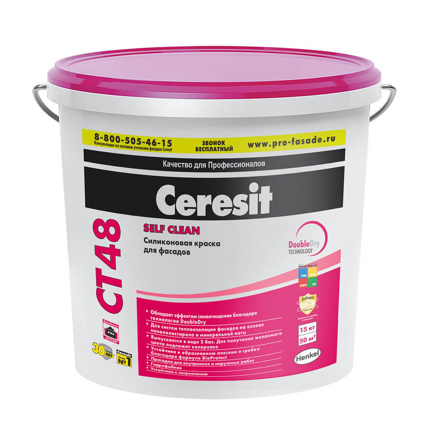 Краска фасадная силиконовая Церезит CT 48 колерованная White new 15 кг
