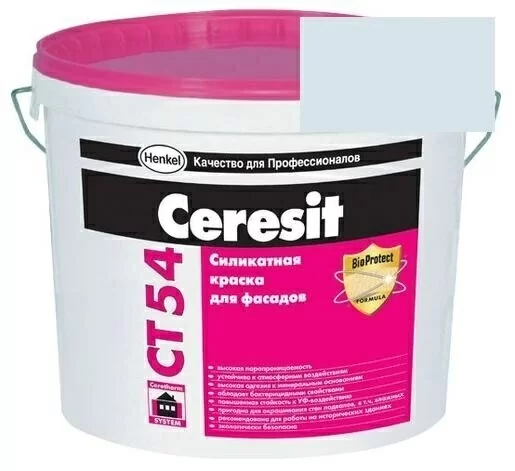 Краска Ceresit CT 54 представляет собой продукт для проведения наружных работ. В ассортименте серии CT 54 представлено несколько десятков цветов краски: от белого колера до ярких тонов.
