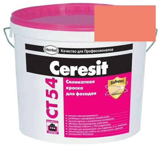 Марка Ceresit производит силикатную краску серии CT 54: материал подходит для внутренних и наружных работ. В состав долговечного материала входят жидкое стекло и минеральные основания. Краска выполнена в цвете INDIANA 5.