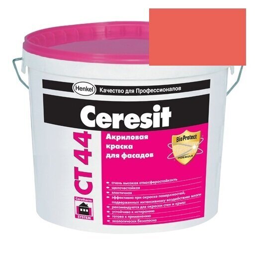 Ceresit СТ 44 – акриловая краска, колерованная в оттенок INDIANA 6. Среди преимуществ Ceresit серии СТ 44 стойкость к внешним воздействиям: краска не только устойчива к атмосферным осадкам, но и к щелочам.