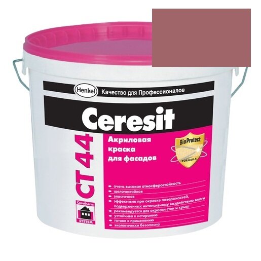 Ceresit линейки СТ 44 – акриловая краска, которая колерована в оттенок NEVADA 6. Состав отличается высоким уровнем паропроницаемости: из окрашенной поверхности беспрепятственно испаряется лишняя влага.