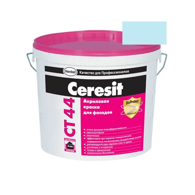 Церезит СТ 44 – акриловая краска на водно-дисперсионной основе, изготавливаемая с добавлением наполнителей и пигментов минерального происхождения, уже колерована. Краска позволяет окрашивать различные декоративные покрытия и практически любые виды штукатурок. Ceresit CT 44 широко применяется в системах теплоизоляции фасадов и подходит как для внутренних, так и для наружных работ.