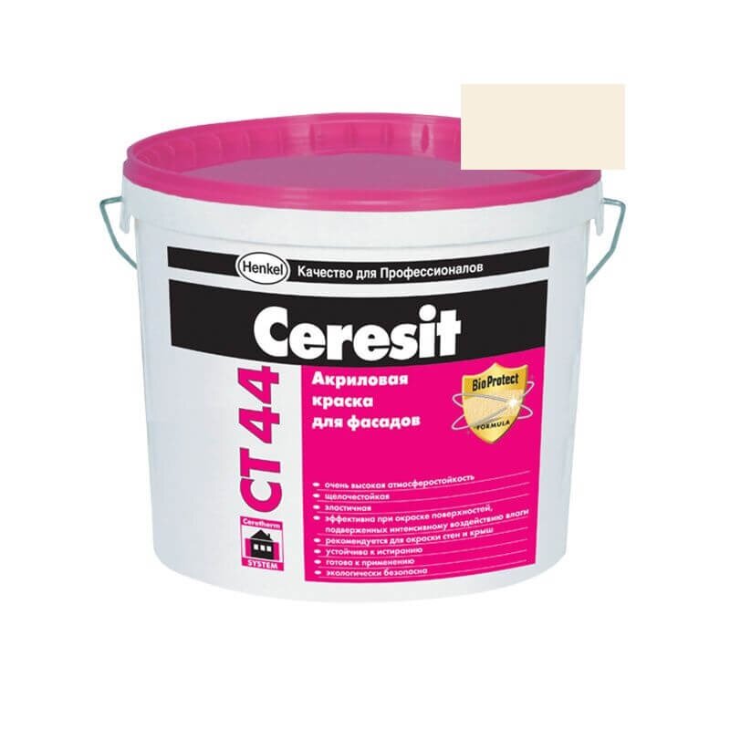 Церезит СТ 44 – акриловая краска на водно-дисперсионной основе, изготавливаемая с добавлением наполнителей и пигментов минерального происхождения, уже колерована. Краска позволяет окрашивать различные декоративные покрытия и практически любые виды штукатурок. Ceresit CT 44 широко применяется в системах теплоизоляции фасадов и подходит как для внутренних, так и для наружных работ.