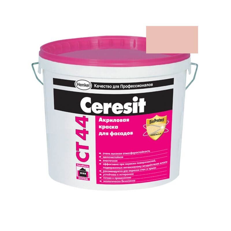 Церезит СТ 44 – акриловая краска на водно-дисперсионной основе, изготавливаемая с добавлением наполнителей и пигментов минерального происхождения, уже колерована. Краска позволяет окрашивать различные декоративные покрытия и практически любые виды штукатурок. Ceresit CT 44 широко применяется в системах теплоизоляции фасадов и подходит как для внутренних, так и для наружных работ.