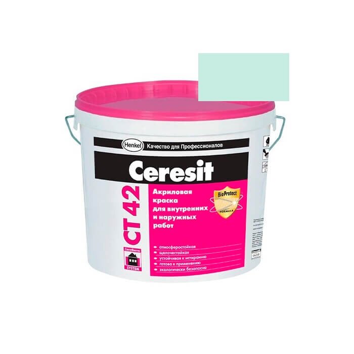Ceresit СТ 42 используется для покраски стен внутри зданий и снаружи (фасады). Применяется для окрашивания бетонных стен, гладкой или фактурной штукатурки. Не использовать для покраски пола. Покраска поверхностей производится в два этапа с разницей в 4-6 часов.