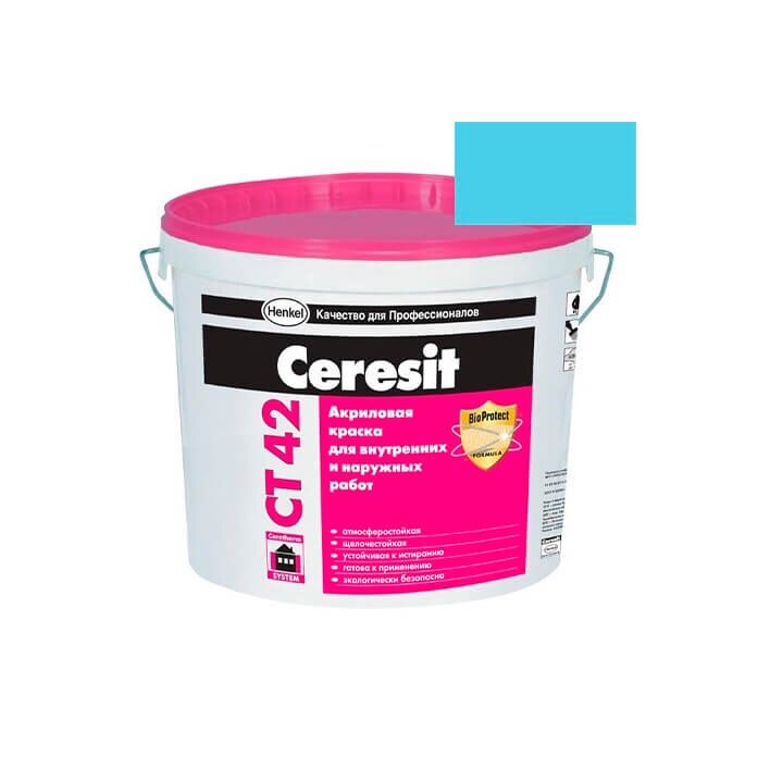 Ceresit СТ 42 используется для покраски стен внутри зданий и снаружи (фасады). Применяется для окрашивания бетонных стен, гладкой или фактурной штукатурки. Не использовать для покраски пола. Покраска поверхностей производится в два этапа с разницей в 4-6 часов.