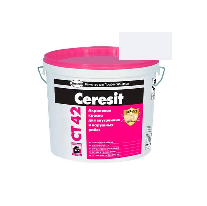 Краска акриловая CERESIT CT 42 колерованная Arctic 1 15 л