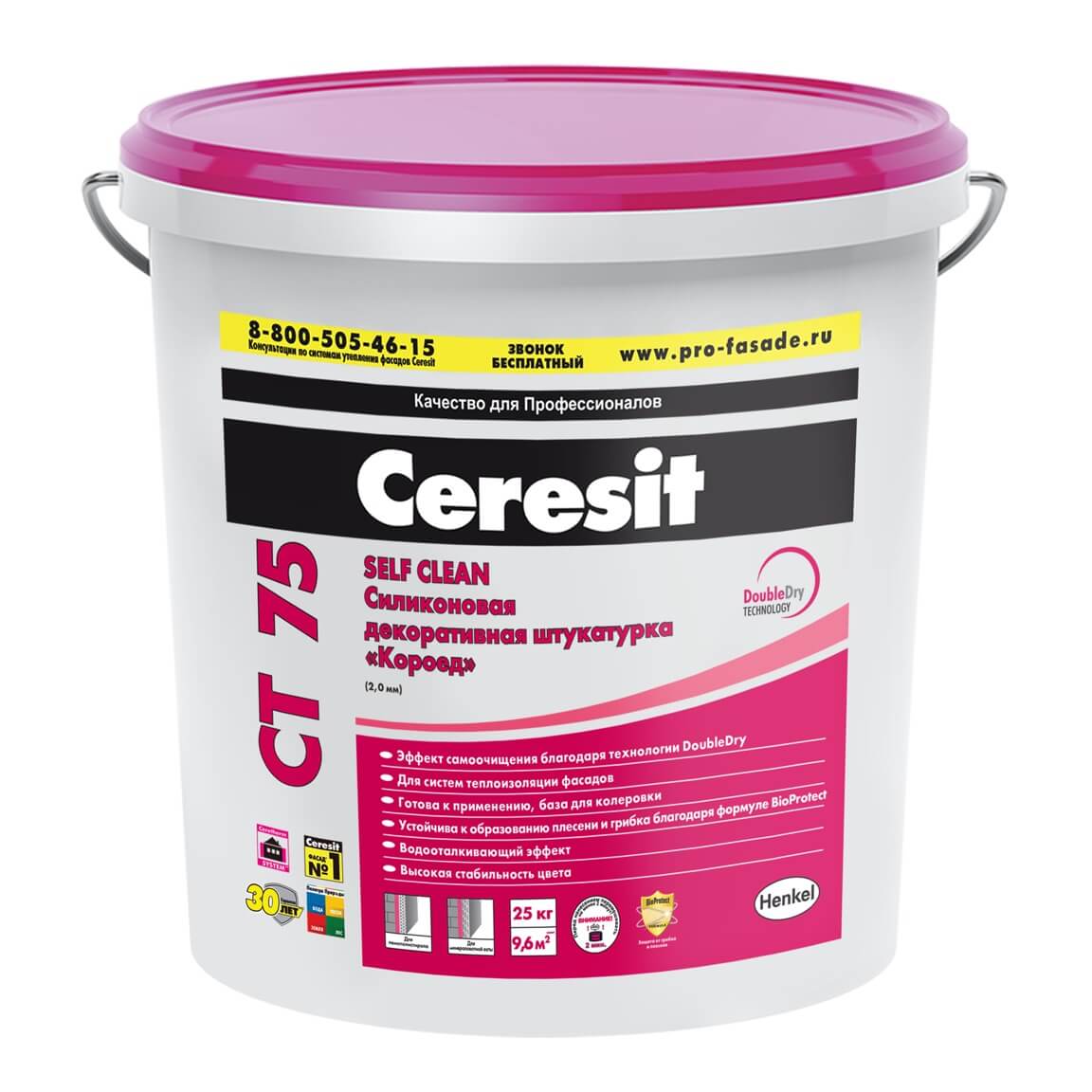 Штукатурка фасадная силиконовая CERESIT CT 75 короед 2,0 колерованная Etna 6 25 кг