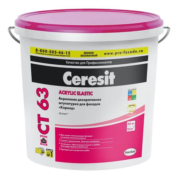 Штукатурка фасадная акриловая CERESIT CT 63 короед 3,0 колерованная Oceania 3 25 кг
