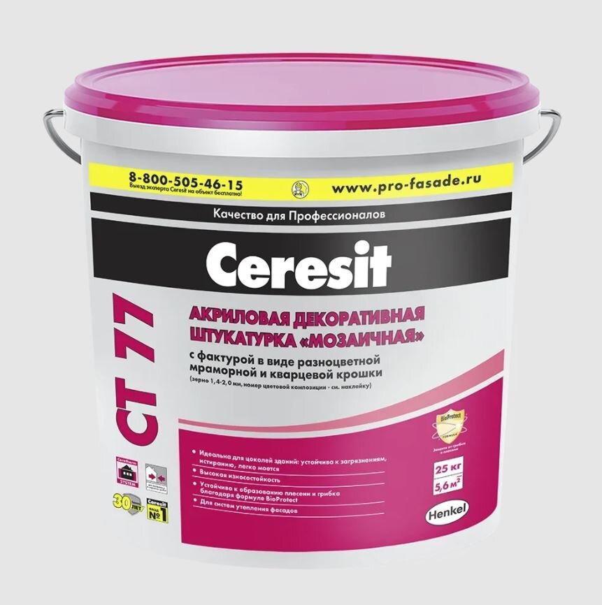 Штукатурка фасадная полимерная Ceresit СТ 77 мозаичная 1,4-2,0 peru 3 25 кг