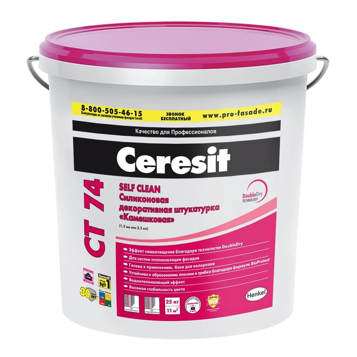 Штукатурка фасадная силиконовая CERESIT CT 74 камешковая 1,5 колерованная Columbia 6 25 кг