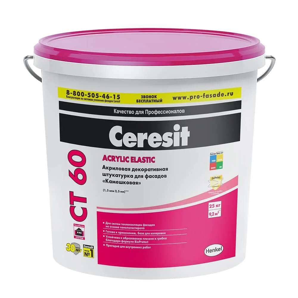 Штукатурка фасадная акриловая CERESIT CT 60 камешковая 1,5 колерованная МП 0082-Ж-0018 25 кг