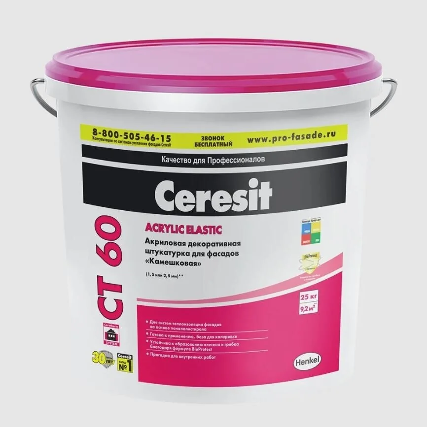 Штукатурка фасадная акриловая CERESIT CT 60 камешковая 1,5 колерованная Utah 2 25 кг