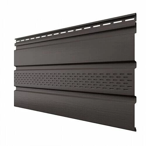 Частично перфорированный софит обеспечивает необходимый забор воздуха в подкровельное пространство и наименьшее попадание пыли. Используются на карнизных свесах.