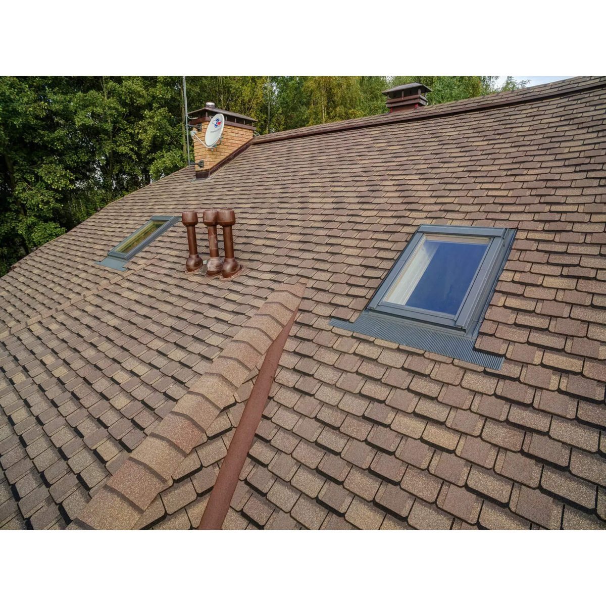 Ультрафиолетовые лучи разрушительно действуют на битум. Чтобы этого не происходило, гонты посыпают сплошным слоем базальтовой крошки – это продлевает срок службы кровельного материала. Для придания цвета черепице базальтовую посыпку подвергают термической окраске. Такой способ окрашивания позволяет сохранять стойкость цвета кровли Шинглас Континент на долгие годы.