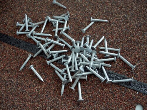 Гвозди предназначены для монтажа гибкой черепицы и доборных элементов. Расчетный расход гвоздей 80 грамм на 1 м2.