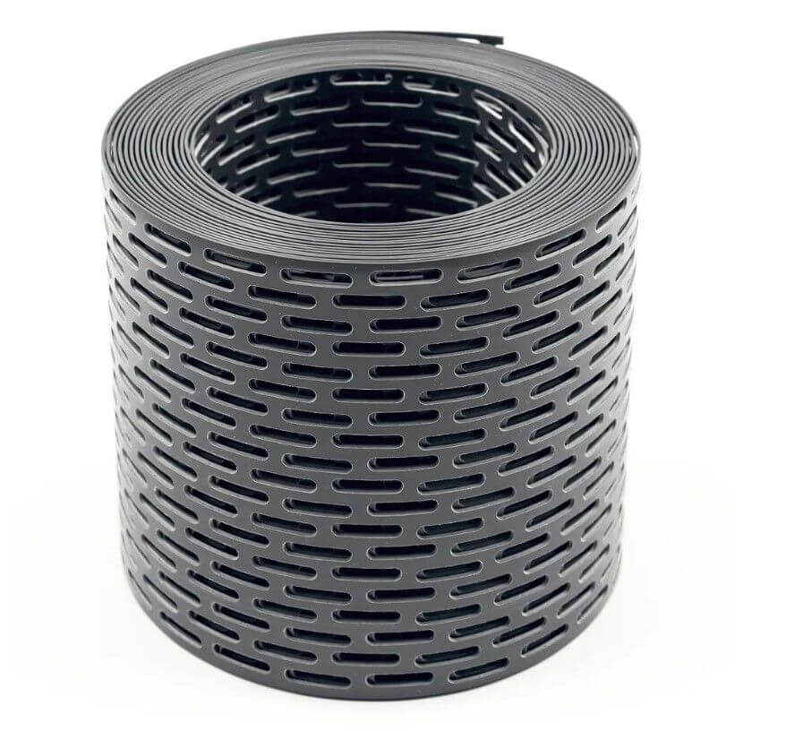 ТЕХНОНИКОЛЬ вентиляционная лента ПВХ изготовлена из морозостойкого полипропилена или ПВХ. Представляет собой пластиковую ленту, имеющую овальные сетчатые отверстия для обеспечения свободного протока воздуха в подкровельное пространство.