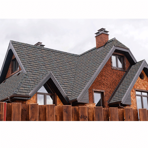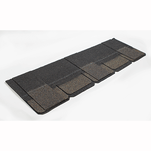 Многослойная черепица отличается усиленным гидроизоляционным слоем за счет спекания гонтов. Тем самым увеличивается жесткость и надежность плитки.