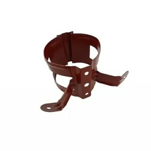 С помощью хомута производят монтаж водосточных труб к фасаду. Данный хомут предназначен для крепления металлического водостока к основанию из дерева.