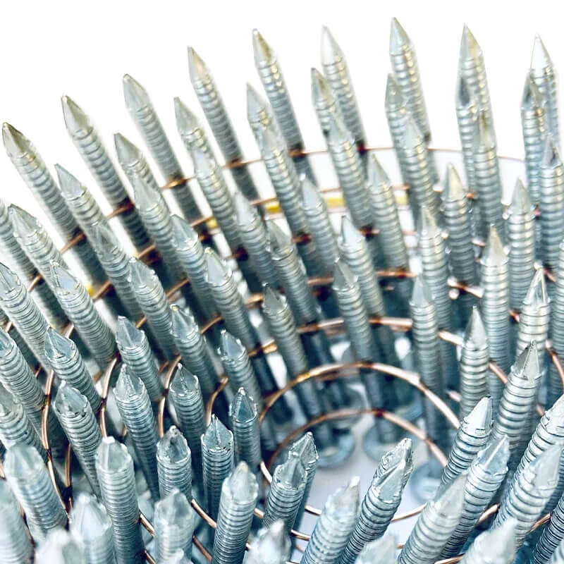 Это кровельные гвозди в барабанной упаковке для пневматического инструмента. Они созданы специально для быстрого и надежного крепления гибкой битумной черепицы, фасадной плитки и различных доборных элементов к деревянной обрешетке. Гвоздь имеет кольцевую насечку (накатку) по всей длине стержня, которая обеспечивает максимальную силу удержания в древесине. Цинковое покрытие защищает от ржавчины.