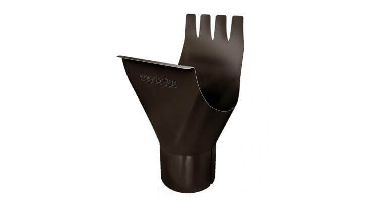 Воронка предназначена для отведения дождевой и талой воды из желоба в водосточные трубы. Соединения с желобом происходит с помощью замка на желобе. Отверстие под воронку вырезается самостоятельно.