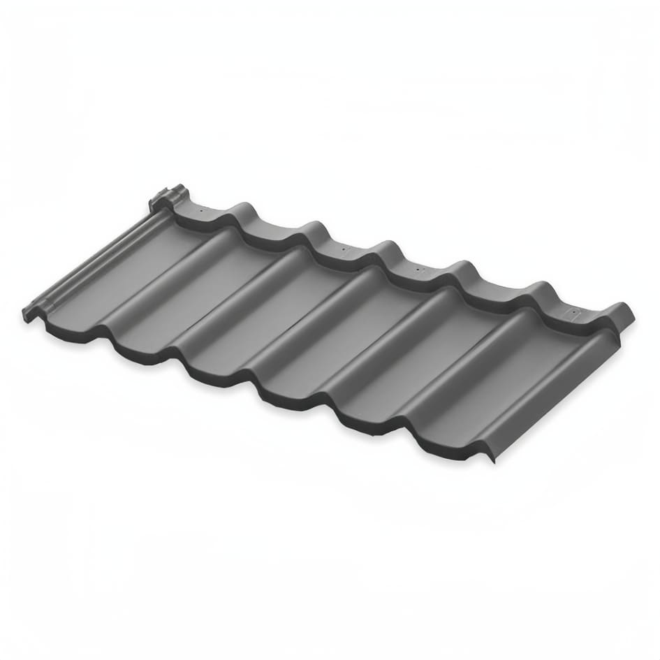 Модульная черепица AQUASYSTEM произведена из оцинкованной стали. Специальное покрытие защищает материал от выцветания под воздействием ультрафиолета и разрушения из-за осадков.