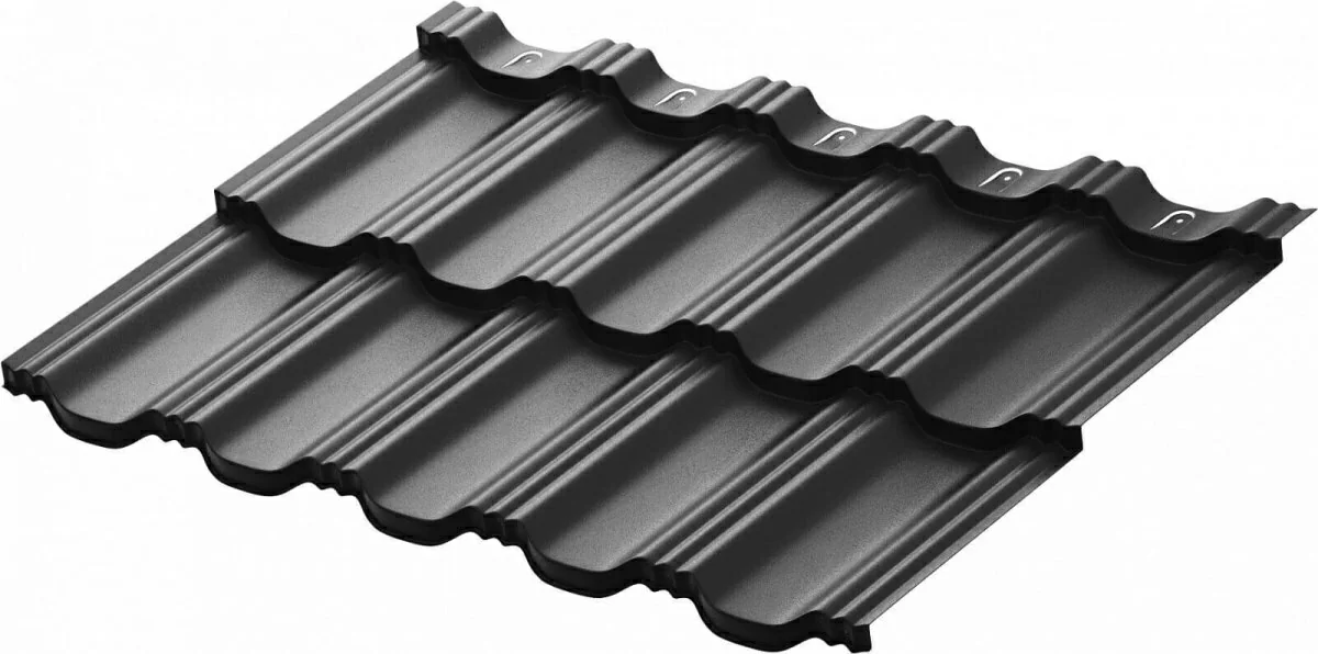 Черепица металлическая модульная AQUASYSTEM Гетеборг XXL 1205х865 0,5 PE Rooftop Бархат Zn180 RAL 9005