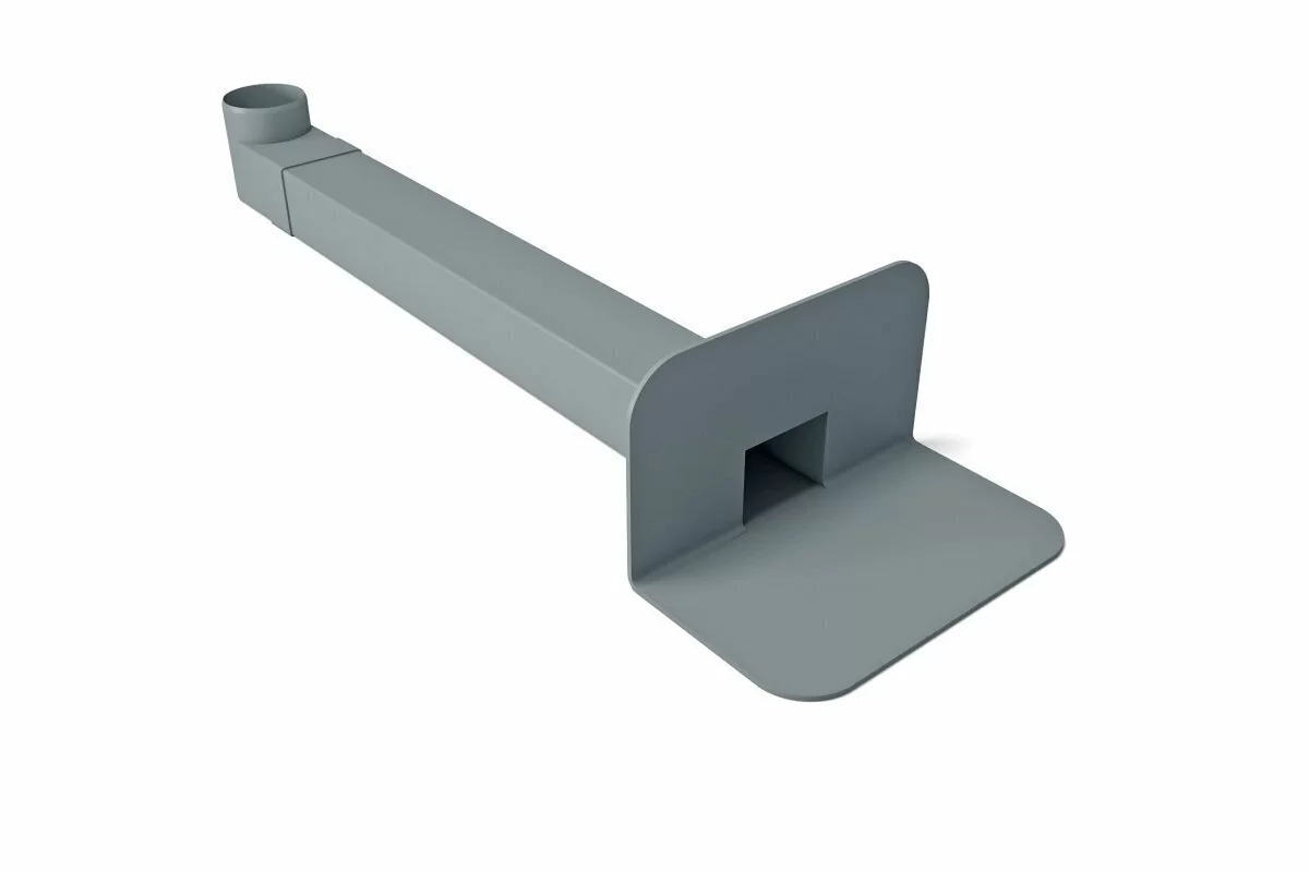 Парапетная воронка изготавливается из высококачественного поливинилхлорида. Используется на плоских кровлях из ПВХ мембран с внешним водостоком. Воронка имеет квадратное сечение и служит для отвода воды через парапеты, балконы.
