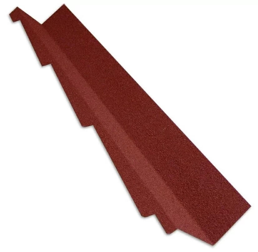Изделие является доборным элементом при устройстве скатной кровли с покрытием из композитной черепицы Люксард, изготовлено из листовой стали с алюмоцинковым покрытием. Внешняя сторона имеет посыпку из базальтового гранулята. При помощи элемента выполняют оформление примыкания к стене, расположенной вдоль ската. Длина примыкания марки Люксард составляет 1250 мм. Расход 0,9 штук на погонный метр.