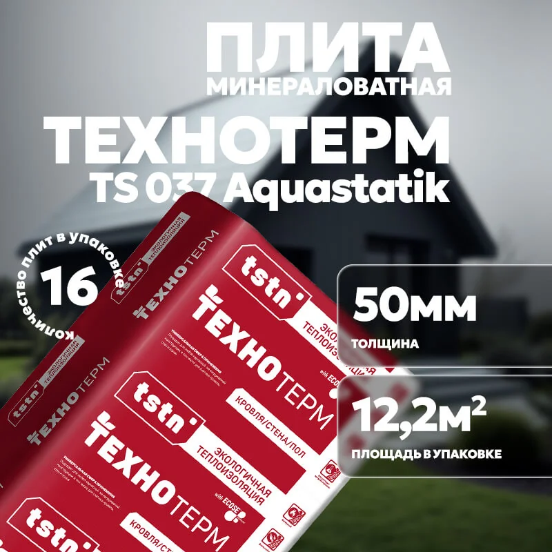 ТехноТерм TS 037 Aquastatik – утеплитель из стекловолокна, который используется для теплоизоляции в частном домостроении.