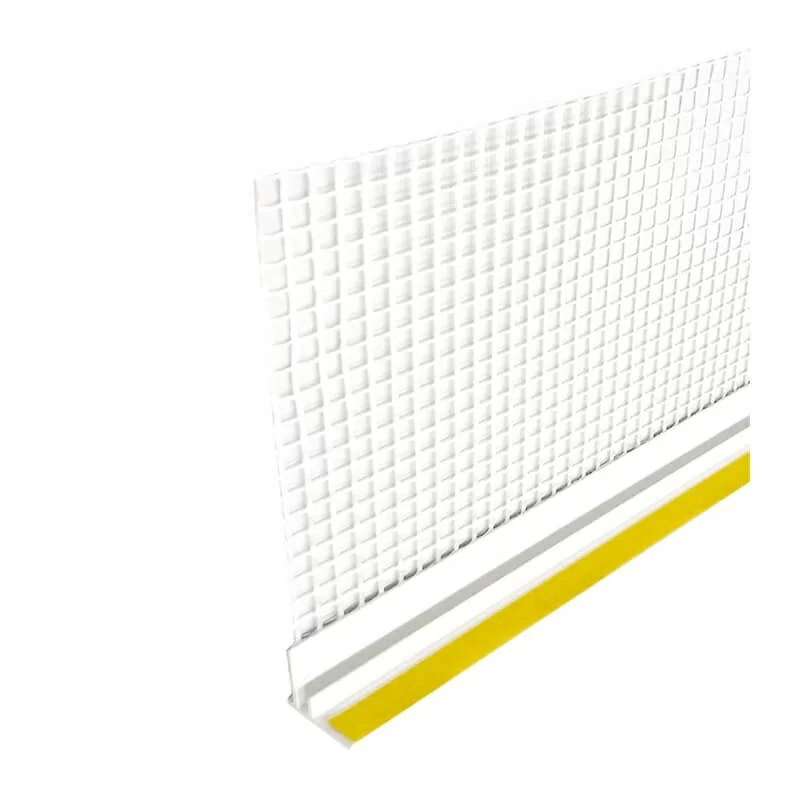 ПВХ профиль с армирующей сеткой устанавливается в местах примыкания перекрытий, оконных и дверных проемов к стенам.