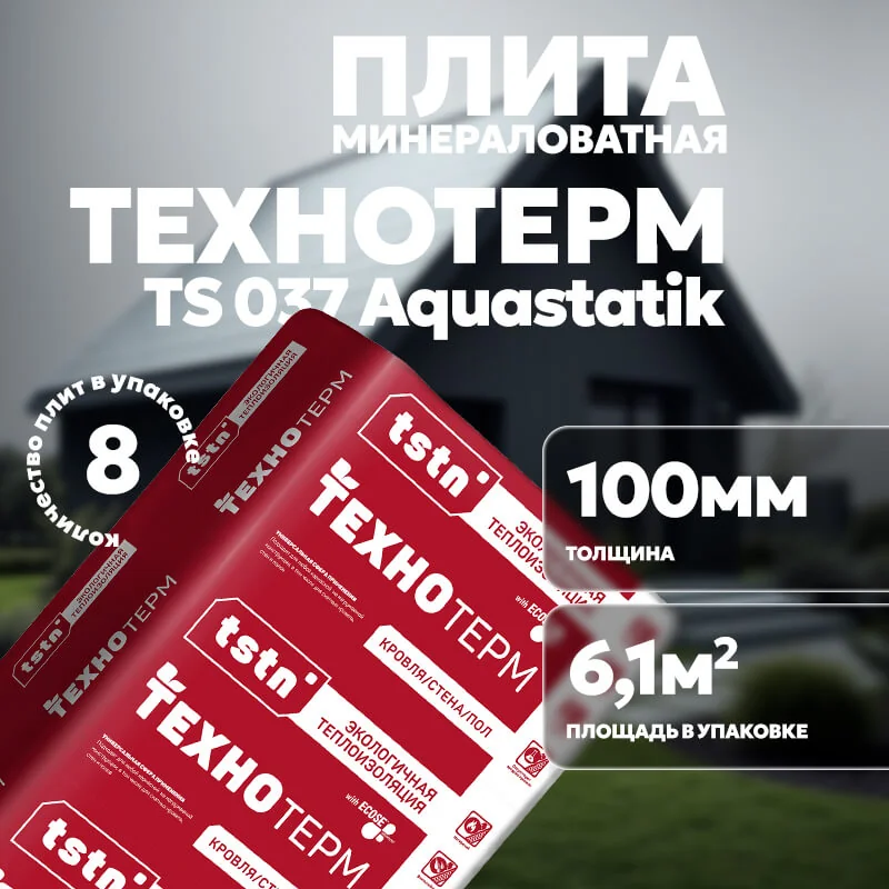 ТехноТерм TS 037 Aquastatik – утеплитель из стекловолокна, который используется для теплоизоляции в частном домостроении.